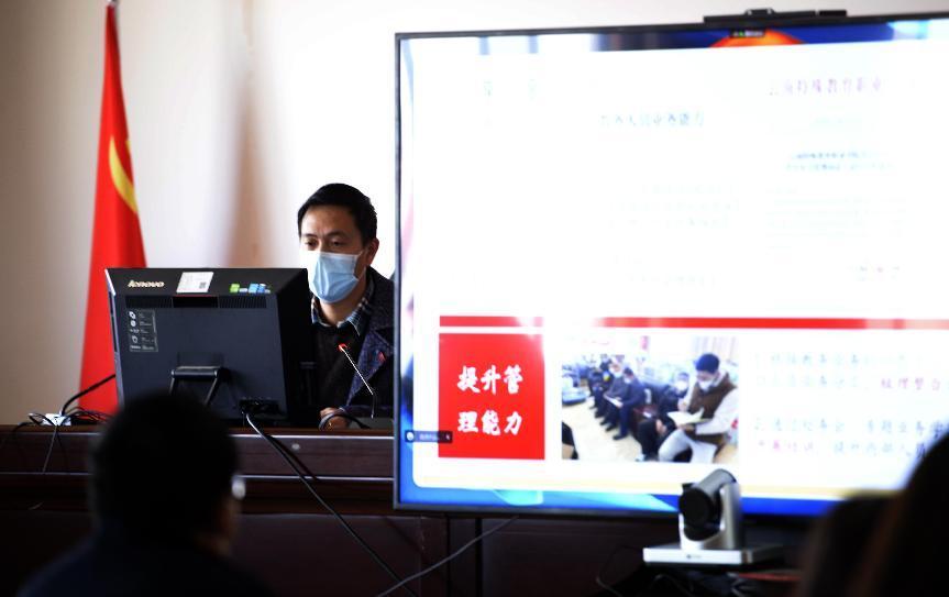 教务处王立宇副处长以“2022-2023学年寒假假期教学工作安排”为题,从人培与课程、1+X建设、实习与就业、培训与科研四大模块,涵盖人才培养方案、2023年春季学期排课工作、教师教案、教材选择与发放、1+X考证、学生实习工作、就业工作、教师假期培训、教师科研任务9个方面,为全校教师解读了2022-2023学年寒假工作任务,并要求各项任务责任人要按时、按规完成相应任务。