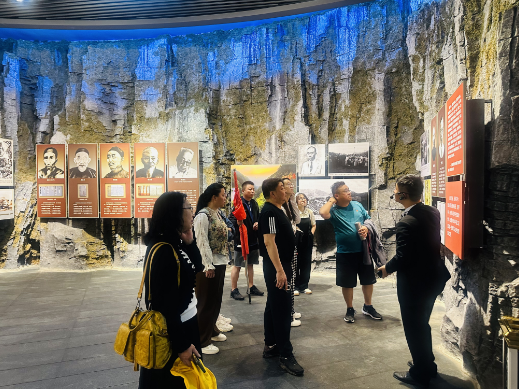 21日上午,在讲解员的带领下,全体学员从娄山关最高峰————西风台顺势而下,经过诗词碑、摩崖石刻、纪念碑、大尖山、小尖山、长空桥、纪念林,深刻感悟80多年前革命先辈们在艰难条件下冒着枪林弹雨与敌军浴血奋战突破重围,取得娄山关大捷的壮烈场面,切身感受了娄山关的险要地势。在娄山关战斗遗址陈列馆,一件件珍贵的历史实物,详细地记录了中国工农红军取得胜利的伟大转折,大家在每一个场景前久久驻足,感受着红色文化的力量。