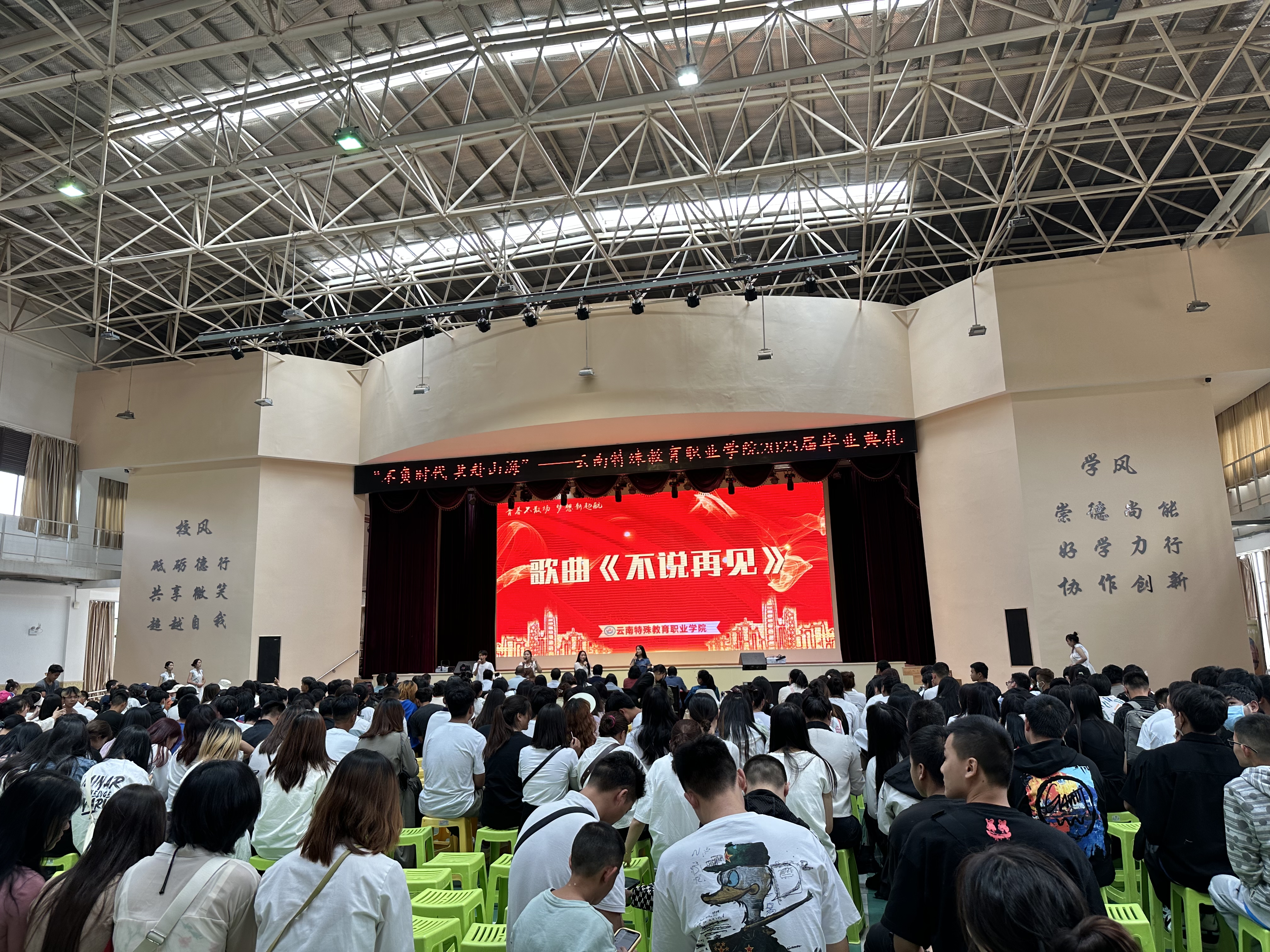 栀子花开,仲夏蝉鸣。2023届毕业生将离开母校,载梦远航,毕业典礼既是对过去的总结和告别,更是开启未来人生的新起点。相信同学们会用大学中所学习的知识技能、培养的创新精神和独立的人格,勇敢面对未来的挑战,同时相信他们会怀着一份对母校的感恩之情创造出属于自己的美好的未来,报答国家、回馈社会。毕业典礼在《亲爱的旅人啊》、《再见》歌声中落下帷幕,让我们共同祝愿特职院的明天更美好!共同祝福特职院学子们一帆风顺,生活幸福,前程似锦!