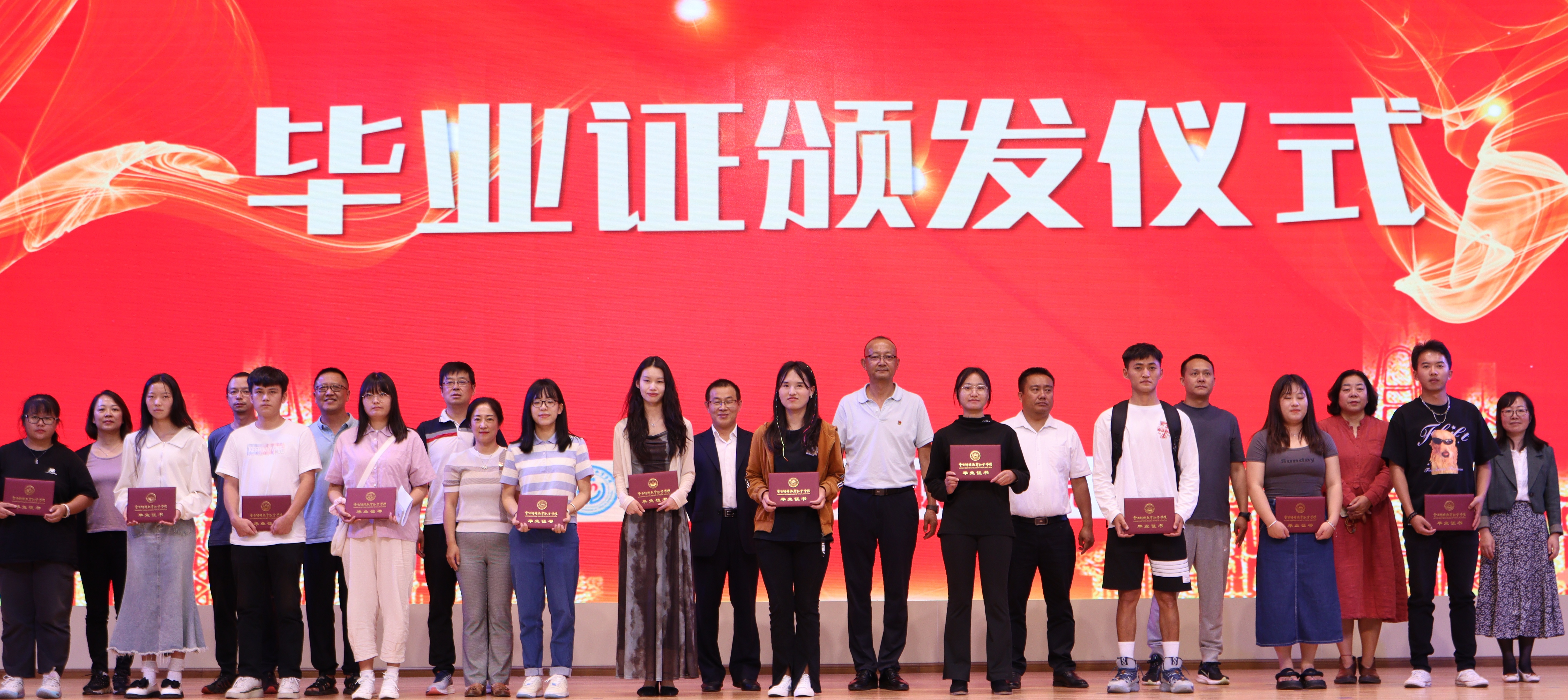 校领导和中层干部为毕业生颁发毕业证