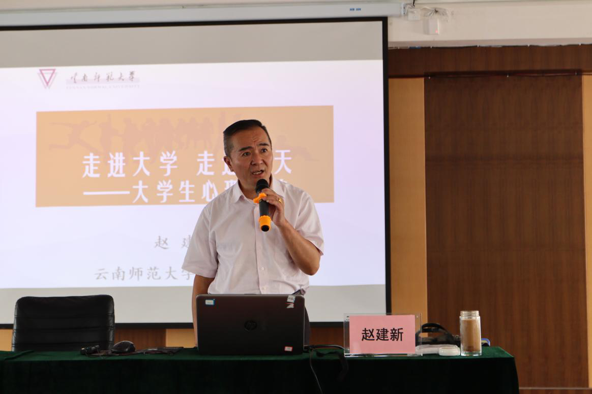 为进一步加强beat365学生管理工作和心理健康教育工作,普及心理健康知识,引导大学生保持积极健康的心理状态,更好更快更顺利地适应大学的学习生活,9月13日邀请了云南师范大学赵建新教授到beat365安宁校区为新生作“走进大学 走进春天 大学生心理调适”的专题讲座。