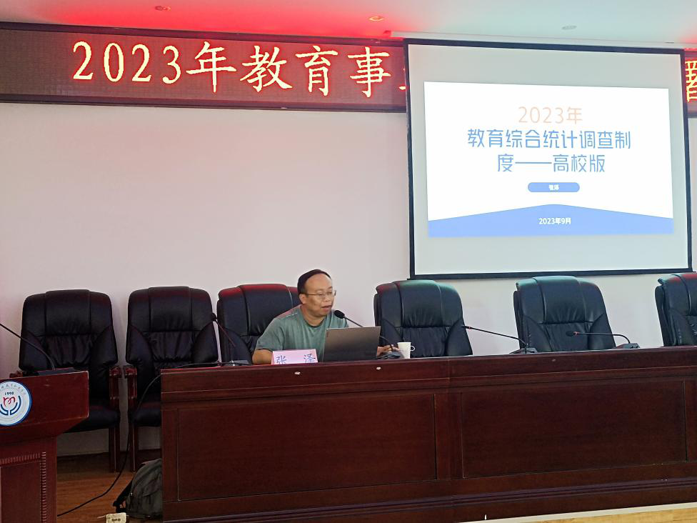 张泽正在作2023年教育事业统计工作培训