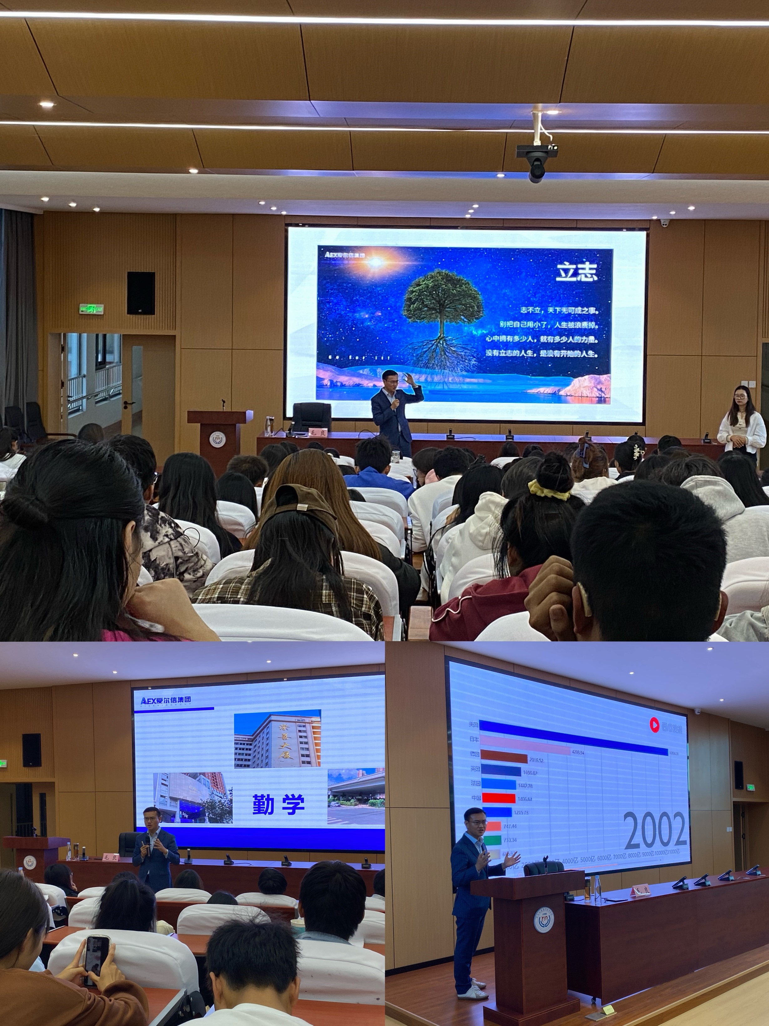 在讲座中,毛良老师围绕立志、勤学、择善、改过等主题进行了精彩的演讲,并结合自己的亲身经历与职业发展经验与同学们分享。他强调了立下明确志向的重要性,鼓励同学们要树立远大的目标并为之努力奋斗。他指出,只有通过不断地学习,提升自己的知识和技能水平,才能够在激烈的竞争环境中脱颖而出。此外,毛良老师还强调了选择优秀伙伴和树立正确道德观念的重要性。他告诫同学们要慎重选择自己的交友圈子,并且要时刻保持积极向上的价值观,远离不良行为和坏影响。他鼓励学生们要勇于面对自己的过去,并积极进行改变与修正,不断提高自己的道德品质与社会责任感。