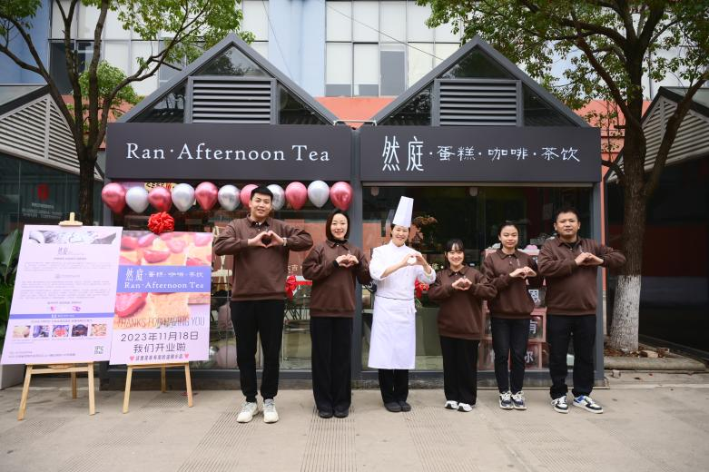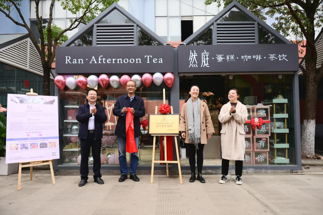 beat365英国官方网站特殊教育与公共服务系西餐烹饪专业实训基地——然庭咖啡馆于11月18日在昆明市呈贡区云上小镇仕林街正式开始营业,beat365英国官方网站党委书记孙继先,党委副书记、校长董亮,副校长李永芳出席挂牌仪式。