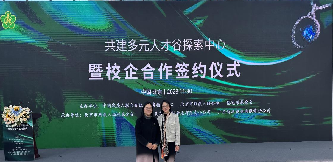 11月30日,在第32个“国际残疾人日”到来之际。由中国残疾人联合会就业服务指导中心、北京市残疾人联合会、蔡冠深基金会共同主办,北京市残疾人福利基金会、孔氏(北京)国际钟表有限责任公司、广东新华黄金有限责任公司共同承办的“共建多元人才谷探索中心暨校企合作签约仪式”在京举行。beat365受邀参加本次活动,包括beat365英国官方网站的18家院校代表和孔氏(北京)国际钟表有限责任公司董事长孔令俊上台签署了合作协议。
