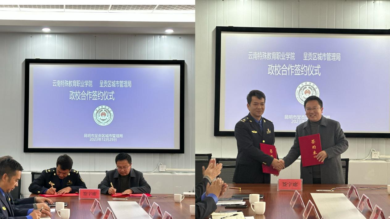 董亮校长与呈贡区城市管理局局长孟兆强签订框架协议