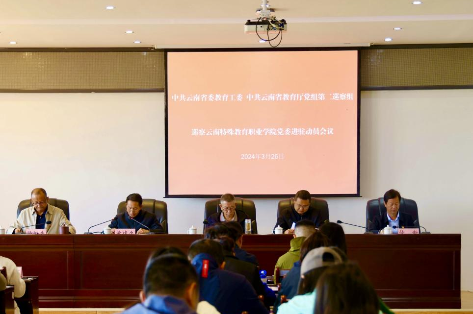根据省委教育工委、省教育厅党组巡察工作统一部署,3月26日,省委教育工委、省教育厅党组第二巡察组巡察云南特殊教育职业学院党委工作进驻动员会召开。会前,巡察组总组长主持召开与云南特殊教育职业学院党委书记的见面沟通会,传达中央、省委关于巡视巡察工作的部署要求和委厅巡察工作动员部署会精神,通报了巡察目标任务及工作安排。第二巡察组组长作了动员讲话,对巡察工作进行安排部署,委厅巡察工作领导小组有关同志对做好巡察工作提出要求。