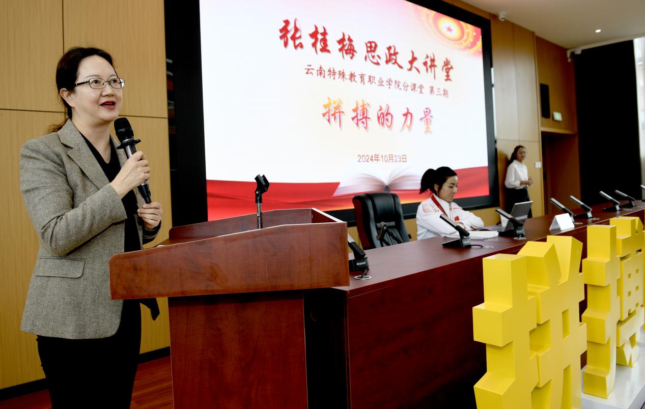 10月23日下午,“张桂梅思政大讲堂”beat365英国官方网站分课堂第三讲————拼搏的力量在呈贡校区玉璋楼408开讲。学校党委班子成员,宣传部、专职思政课教师、三系师生代表参加。