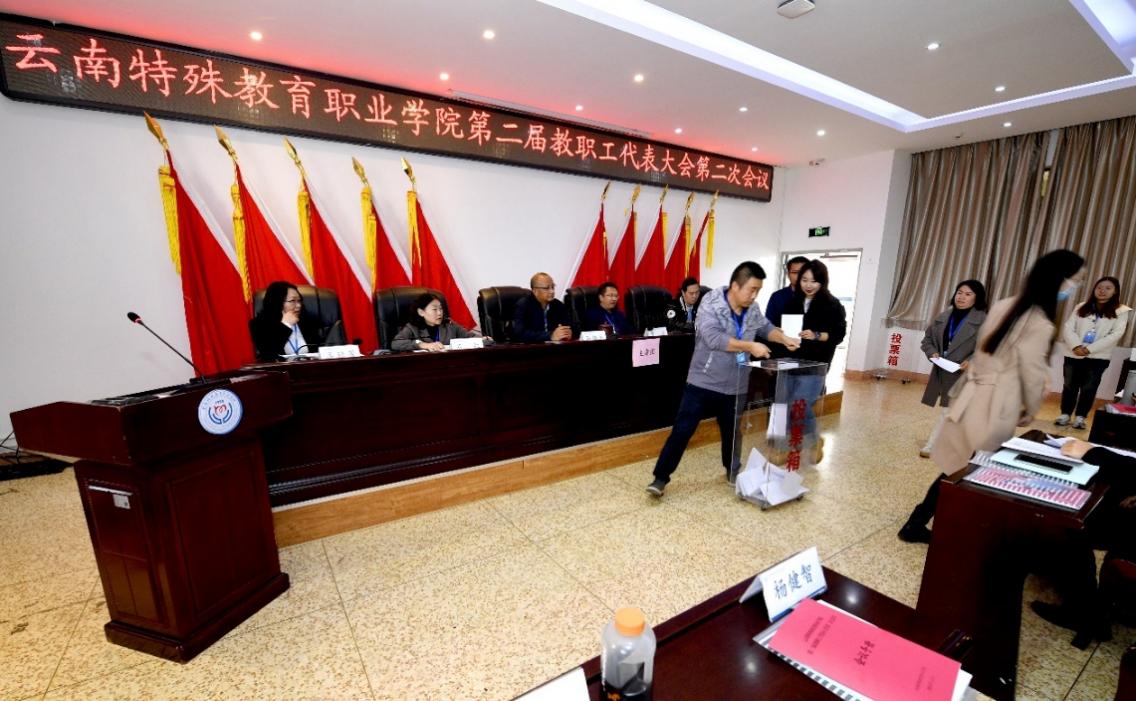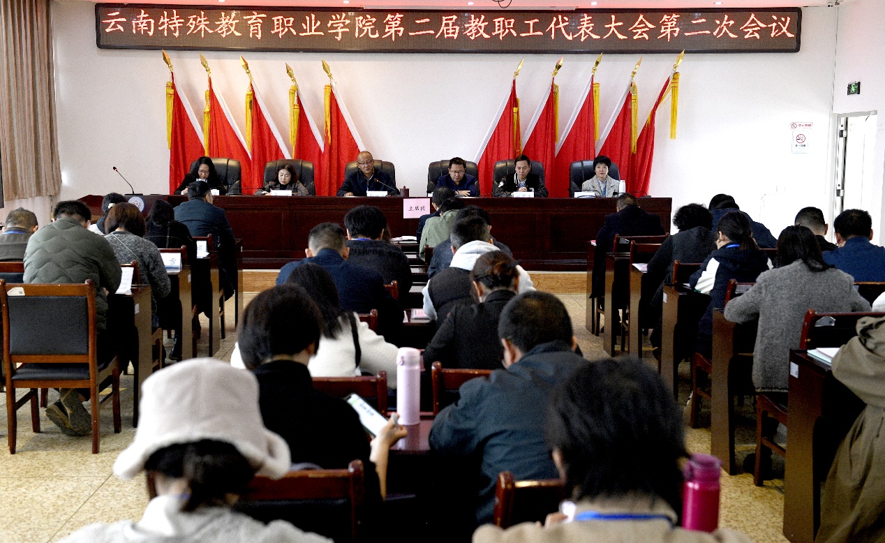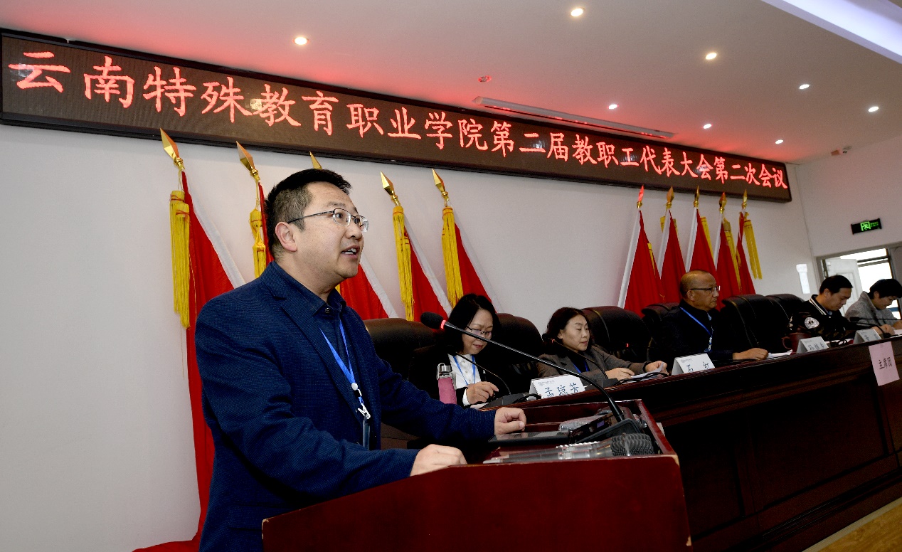 大会在国歌声中开幕,随后由工作人员宣读学院党委关于同意召开第二届教职工代表大会第二次会议的批复。