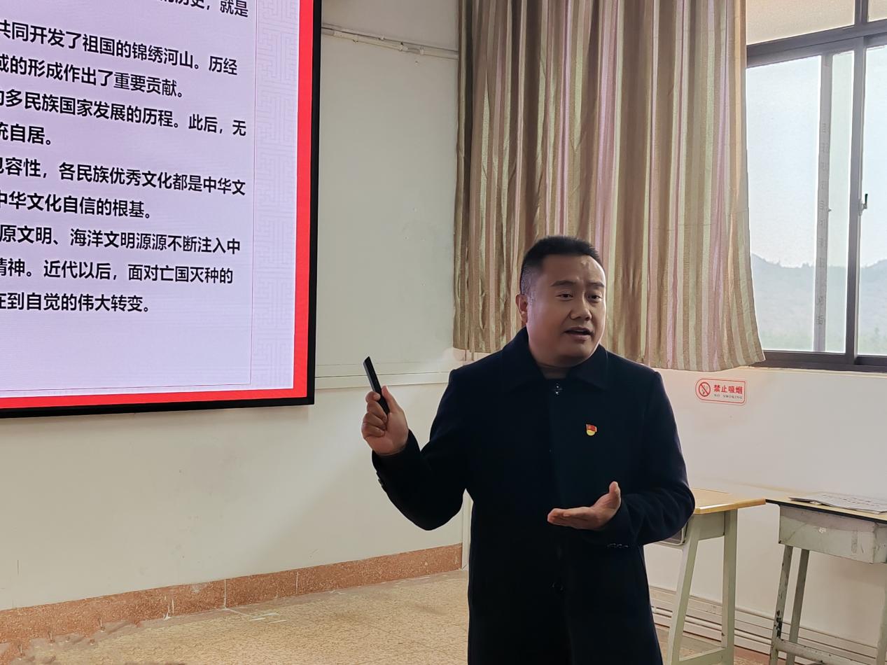 为深入学习贯彻党的二十届三中全会精神,11月5日下午,beat365英国官方网站党委副书记石安银到挂钩联系的行政第三党支部,以《深入开展铸牢中华民族共同体意识教育》为主题,用一堂“党课” 讲好民族“大团结”,给党员讲授了一堂生动的党课。