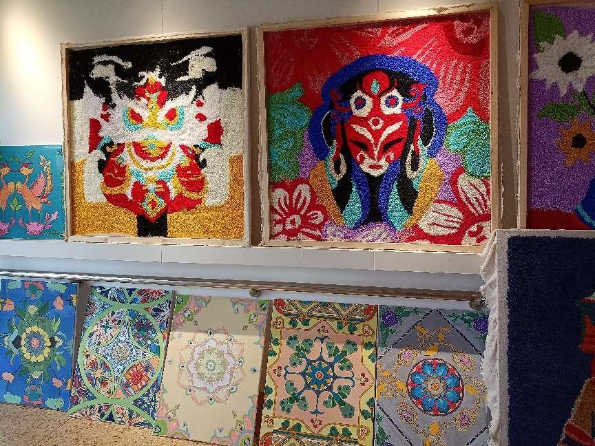 图为书画艺术专业学生工笔画、装饰版画作品