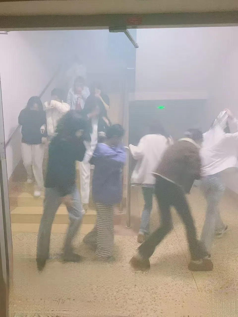 警报声响起,同学们按照规划路线迅速撤离,全体学生按计划完成疏散集结,用时4分32秒。
