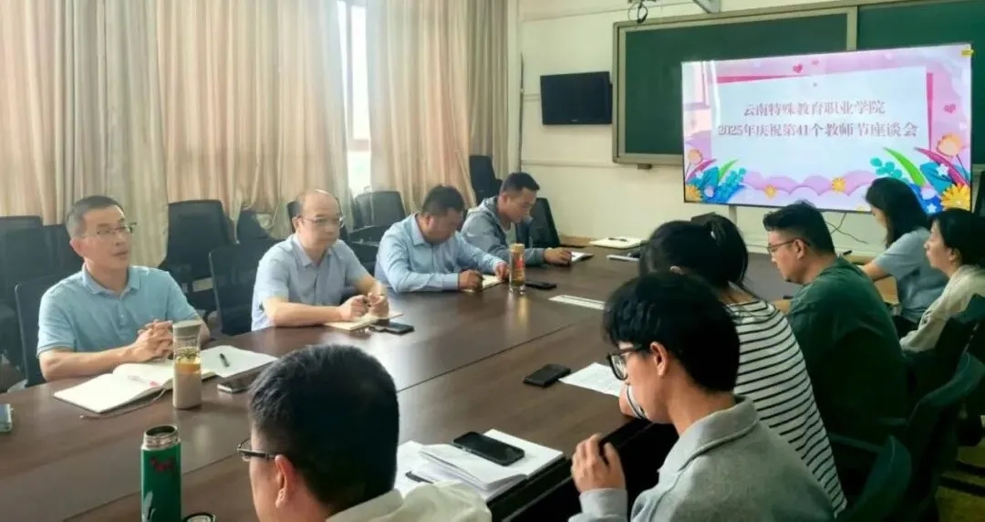 校长石安银代表学校向辛勤耕耘在特殊教育一线的全体教职员工致以节日的热烈祝贺和诚挚问候,充分肯定了广大教师为云南特殊教育事业发展所做出的贡献。他特别提到,习近平总书记始终高度重视、关心教师队伍,多次深入各地考察座谈,并强调要严格落实省委书记、省长去年教师节来校视察时提出的指示要求,立足于特殊教育特色,突出与普通高职院校的差异化发展,把特殊教育做大做强。他表示,学校将持续提高残疾学生比例,致力优化专业设置,加快基础设施建设,积极争取上级支持,稳步提升教师待遇,多措并举推动学校建成高质量、高水平高职院校,真正发挥引领全省各州(市)、县(区)特教学校发展的“领头羊”作用。他勉励全体教师上下同欲、齐心合力,常怀空杯心态,永葆本领危机感,把特教本领练好、练尖、练强,为培养更多自尊、自信、自强、自立的优秀技能人才贡献力量。 座谈交流时,资深教师代表们回顾了学校的发展变迁,讲述自己在特教岗位上的心路历程与教学感悟,表达了对特教事业深厚的情感和不变的初心。新进教师代表分享了自己入职以来的心得体会,纷纷表示将以前辈为榜样,快速成长,为学校注入新活力。教师们围绕学校发展踊跃建言,提出了开设实践周、提升思政教师专业化水平、注重学生职业素养教育等多项具有建设性的“金点子”。 学校党委书记杨波在总结讲话中再次向全体教师致以崇高敬意,并对教师们关切的热点问题逐一进行了回应与指导。他强调,省委、省政府为学校确立了清晰的办学定位与发展方略,当前正是把握机遇、迎接挑战,擦亮特殊教育鲜明特色的关键时期。为此,他提出三点明确要求:一是学校领导班子要“管得好”,着力做好“两个加号”——在专业教学中融入特教技能,与高水平专业院校开展共建合作,为学校发展赋能增值;二是教师要“教得好”,主动提升专业素养与特殊教育教学能力,并在教研科研领域持续深耕、追求卓越;三是学生要“学得好”,他特别鼓励马克思主义学院思政教师与其他专业教师开展跨学院教研协作,共同推进课程思政内容与方法的创新实践,切实把立德树人根本任务落到实处。他希望全体教职工能继续携手并肩,守正创新,共同推动beat365英国官方网站的高质量发展,为云南乃至全国的特殊教育事业做出新的更大贡献!