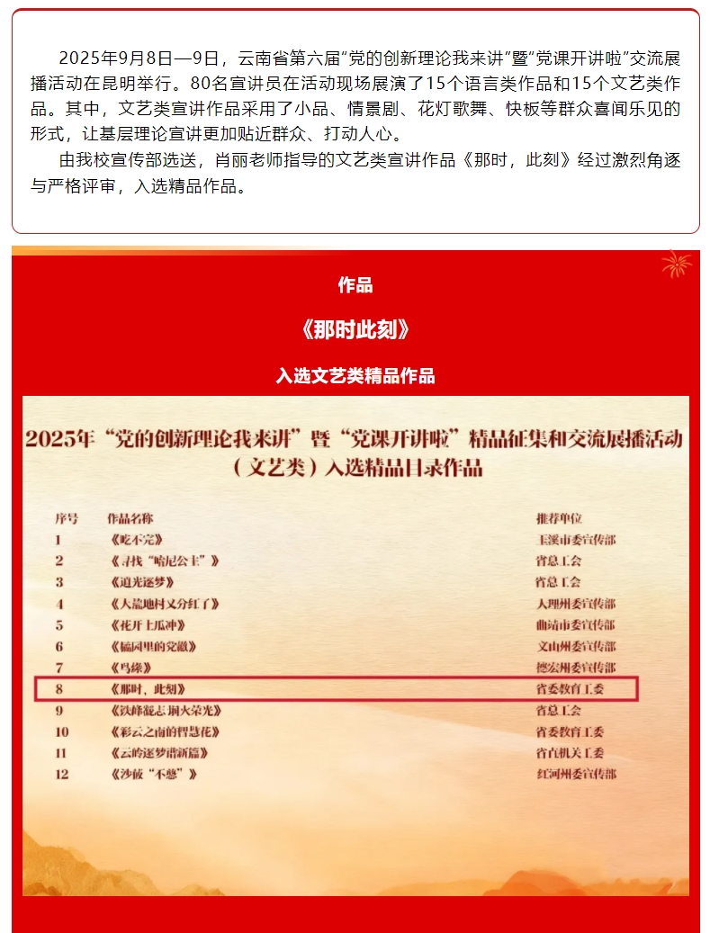 喜报!beat365文艺类作品《那时,此刻》入选云南省第六届“党的创新理论我来讲”精品征集和交流展播活动精品作品