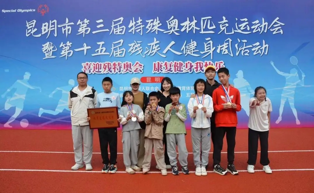 呈贡区特殊教育学校作为一所新办的培智学校,此次由7名学生组成了运动员队伍首次登上特奥赛事舞台。备赛期间,学校选聘专职教练,针对每一位运动员的身体条件与能力特点,制定专属训练方案。师生克服困难与挑战,日复一日的坚持练习,筑牢竞技基础。最终,在本届特奥会50米、立定跳远、铅球等5个项目中夺得2金、2银、3铜。