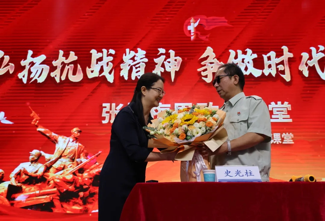 党委委员、副校长石红聆听完讲座,总结发言。她希望学校的每一位老师都能以史光柱老师为榜样,把抗战精神里的坚韧与担当,化作日常工作中攻克难题的底气;期待同学们既要扎实学好专业知识,也要带着这份精神底色,在人生的每一条赛道上奋力奔跑,让英雄精神不仅闪耀在特殊教育的征途,更照亮各行各业从业者追逐理想、担当时代的前行之路,未来无论扎根哪里,都能守住初心、坚守奉献,用专业能力创造价值,以实干姿态回应时代需求。
