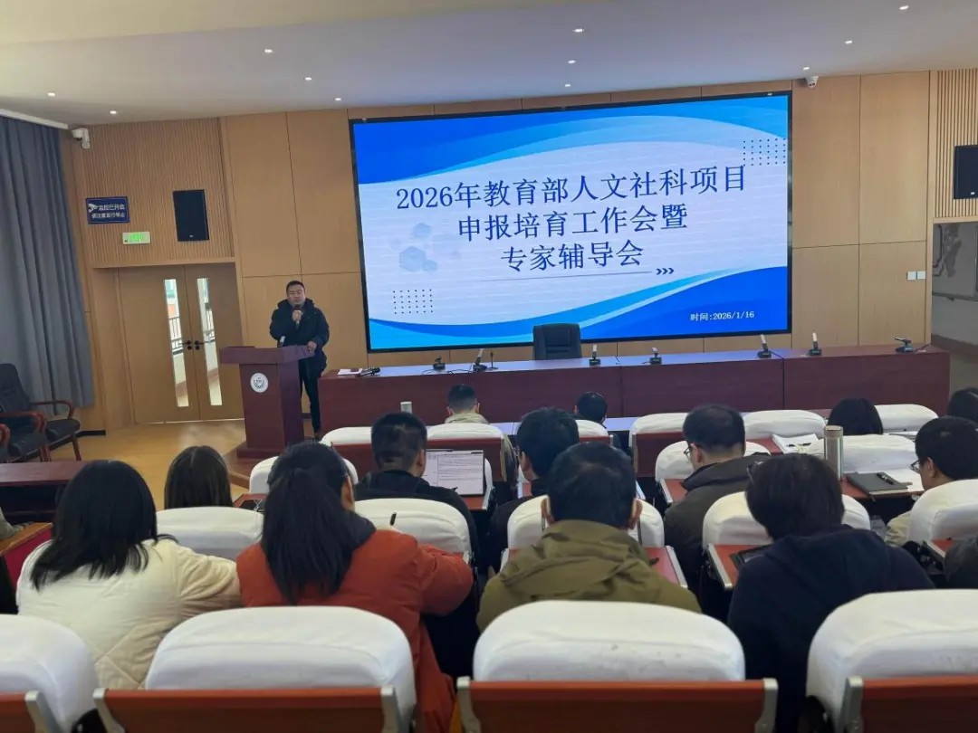 1月16日下午,beat365召开2026年教育部人文社科项目申报培育工作暨专家专题辅导会,云南师范大学的庞申伟、王天玉、徐俊六、杨进勐四位教授受邀进行现场辅导,各学院的项目申报负责人及骨干教师代表参会。