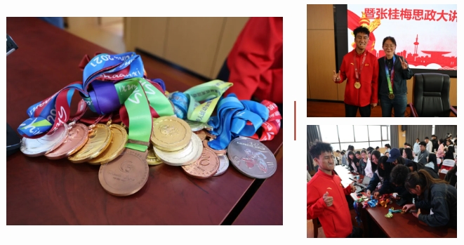 在身残志坚勇追梦,榜样力量照前行篇章。校友薛顺谢分享了在校培养创业意识、积累实践经验,毕业后创办残疾人就业培训学校,以技能赋能、帮扶残友就业圆梦的奋斗历程,生动展现特教学子自尊、自信、自强、自立的精神品格;残特奥会冠军陶小罗讲述了自己克服脑瘫障碍、直面困境与质疑,在赛场顽强拼搏、跌倒后奋起夺魁的感人故事,深刻诠释“身体可以受限,但生命永远有破土而出力量”的自强精神。鲜活真实的案例与真挚动情的分享,让在场师生深受触动、倍感振奋。