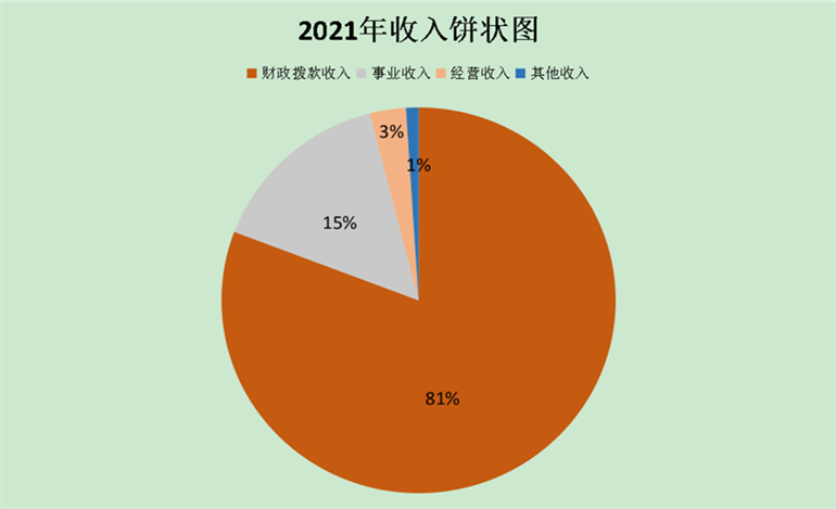 beat365英国官方网站部门2021年度收入合计4,842.05万元。其中:财政拨款收入3,911.01万元,占总收入的80.77%;上级补助收入0.00万元,占总收入的0.00%;事业收入737.97万元(含教育收费737.97万元),占总收入的15.24%;经营收入143.32万元,占总收入的2.96%;附属单位缴款收入0.00万元,占总收入的0.00%;其他收入49.75万元,占总收入的1.03%。与上年对比,财政拨款收入增加了671.49万元,事业收入增加了193.08万元,经营收入增加了57.67万元,其他收入增加了33.57万元。收入整体增加,主要原因是2021年学生招生人数增加,生均拨款及学生学费收入增加。