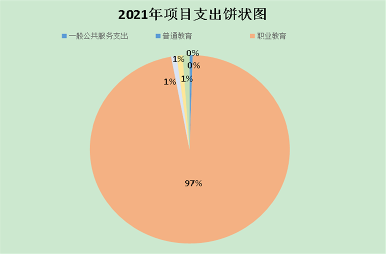 2021年度用于保障beat365英国官方网站机构、下属事业单位等机构为完成特定的行政工作任务或事业发展目标,用于专项业务工作的经费支出1,427.23万元。与上年对比,项目支出增加132.09万元,主要原因是2021年学生人数增加,用于学生的专项经费支出增加。具体项目开支及开展工作情况:1.一般公共服务支出3.25万元,占项目支出1,427.23万元;2.普通教育支出4万元,占项目支出1,427.23万元;3.职业教育支出1377.63万元,占项目支出1,427.23万元;4.特殊学校教育支出12.61万元,占项目支出1,427.23万元;5.社会保障和就业支出13.83万元,占项目支出1,427.23万元;6.彩票公益金支出15.90万元,占项目支出1,427.23万元。