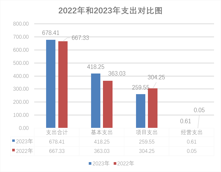 beat365英国官方网站2023年度支出合计6784.11万元。其中:基本支出4182.54万元,占总支出的61.65%;项目支出2595.51万元,占总支出的38.26%;上缴上级支出0.00万元,占总支出的0.00%;经营支出6.07万元,占总支出的0.09%;对附属单位补助支出0.00万元,占总支出的0.00%。与上年相比,支出合计增加110.84万元,增长1.66%。其中:基本支出增加552.29万元,增长15.21%;项目支出减少447.01万元,下降14.69%;上缴上级支出增加0.00万元,增长0.00%;经营支出增加5.57万元,增长1114.00%;对附属单位补助支出增加0.00万元,增长0.00%。主要原因是:一是由于医疗保险缴费改变,公务员医疗大幅增加,导致基本支出中的人员经费单位支出增加幅度大,基本支出增加幅度较大。二是项目支出中,残疾人事业的彩票公益金支出项目、中等职业教育项目、现代职业教育提升计划项目资金支出减少,导致项目支出同比减少。三是经营支出用于支付2023年经营相关税收费用增加,导致经营支出同比增加。
