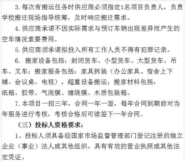 1、项目名称:beat365英国官方网站选聘搬家公司项目(二次招标)