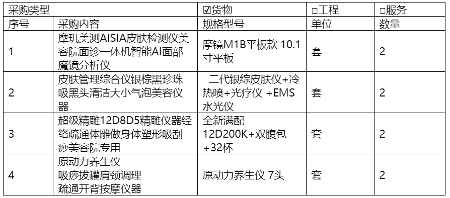 1、 项目名称:美容美体艺术专业设备采购