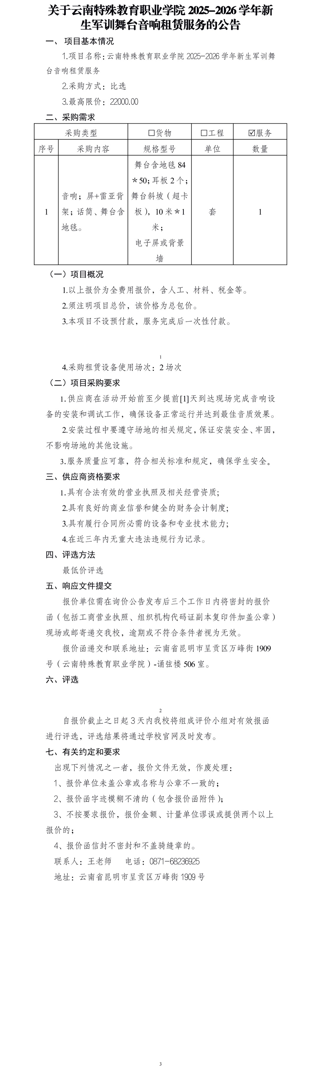 关于beat365英国官方网站2025-2026学年新生军训舞台音响租赁服务的公告