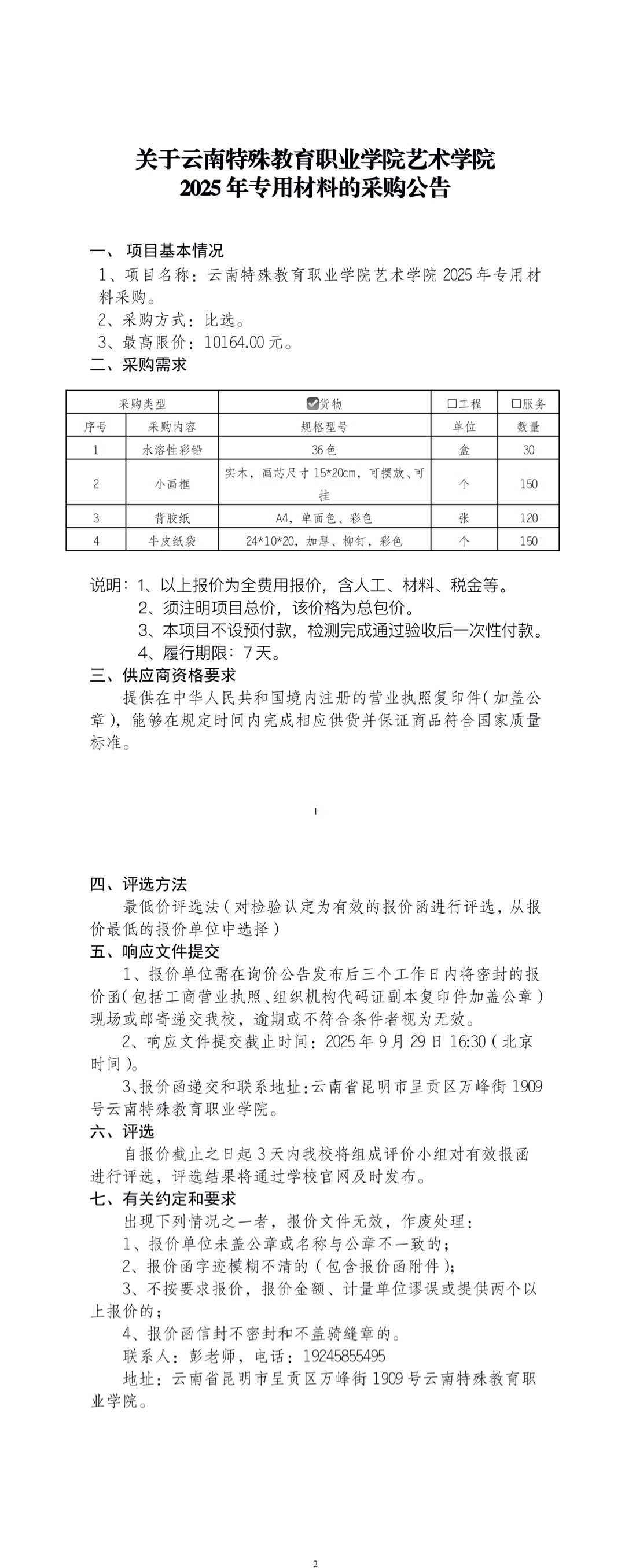 关于beat365英国官方网站艺术学院 2025年专用材料的采购公告