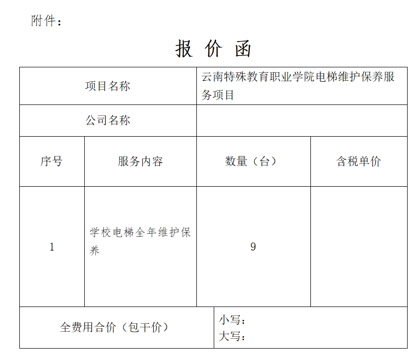2.2供应商需提供呈贡范围内有效期内的业绩证明(不少于1个),另外供应商提供全天24小时急修服务,并且应在接到报修电话后及时予以排除。接到电梯困人等故障通知后,15分钟内到达现场实施救援。
