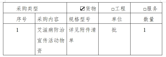 1、项目名称:beat365英国官方网站艾滋病防治宣传活动物资采购