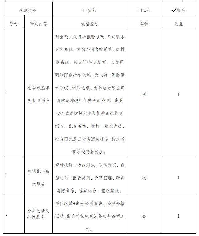 1、项目名称:消防设施年度检测项目