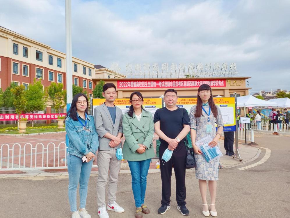 高考前夕,为了保证高考顺利进行,招生与对外发展处详细地制定了送考工作方案,以确保学生顺利进入考场。此次高考beat365共有21名学生参加考试,考点集中在西南联大研究院附属学校。6月7日早上开考前,学院副院长李冠宏一行到考点为高考学生加油打气。高考期间,徐艳蓉、肖然负责所有考生的全面管理工作,组织考生以考场为单位考前、考后的往返集中,时时关注考生动态,对所有考生进行健康状况的监测,做好考生的思想工作,注重考生心理健康,督导考生按时学习、赴考、就餐、休息等,做好相关方面的沟通、协调并及时处理考试期间出现的突发事件,确保考生安全高考。