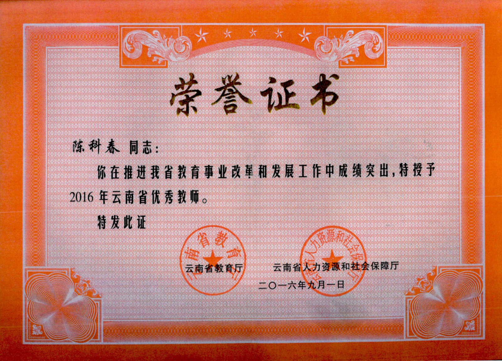 陈科春-云南省优秀教师