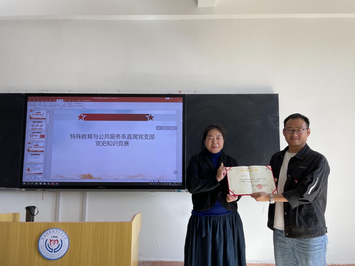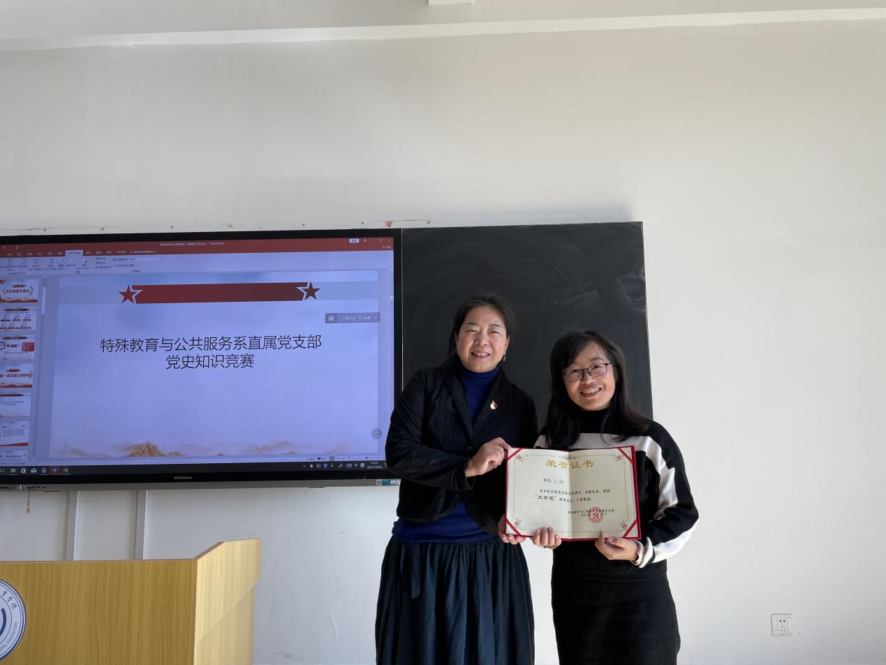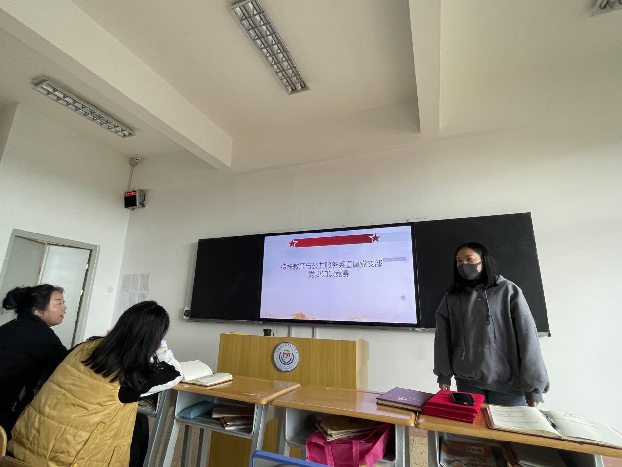 为积极响应学党史、强自信的号召,丰富党史学习教育的形式,beat365英国官方网站特殊教育与公共服务系党支部于2021年10月20日下午举办了第一届党史知识竞赛。支部全体党员积极参与,展现出了作为中国共产党员的理论素养。