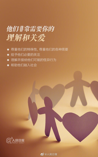 让我们共同行动起来,不排斥、不歧视,给他们更多关爱!