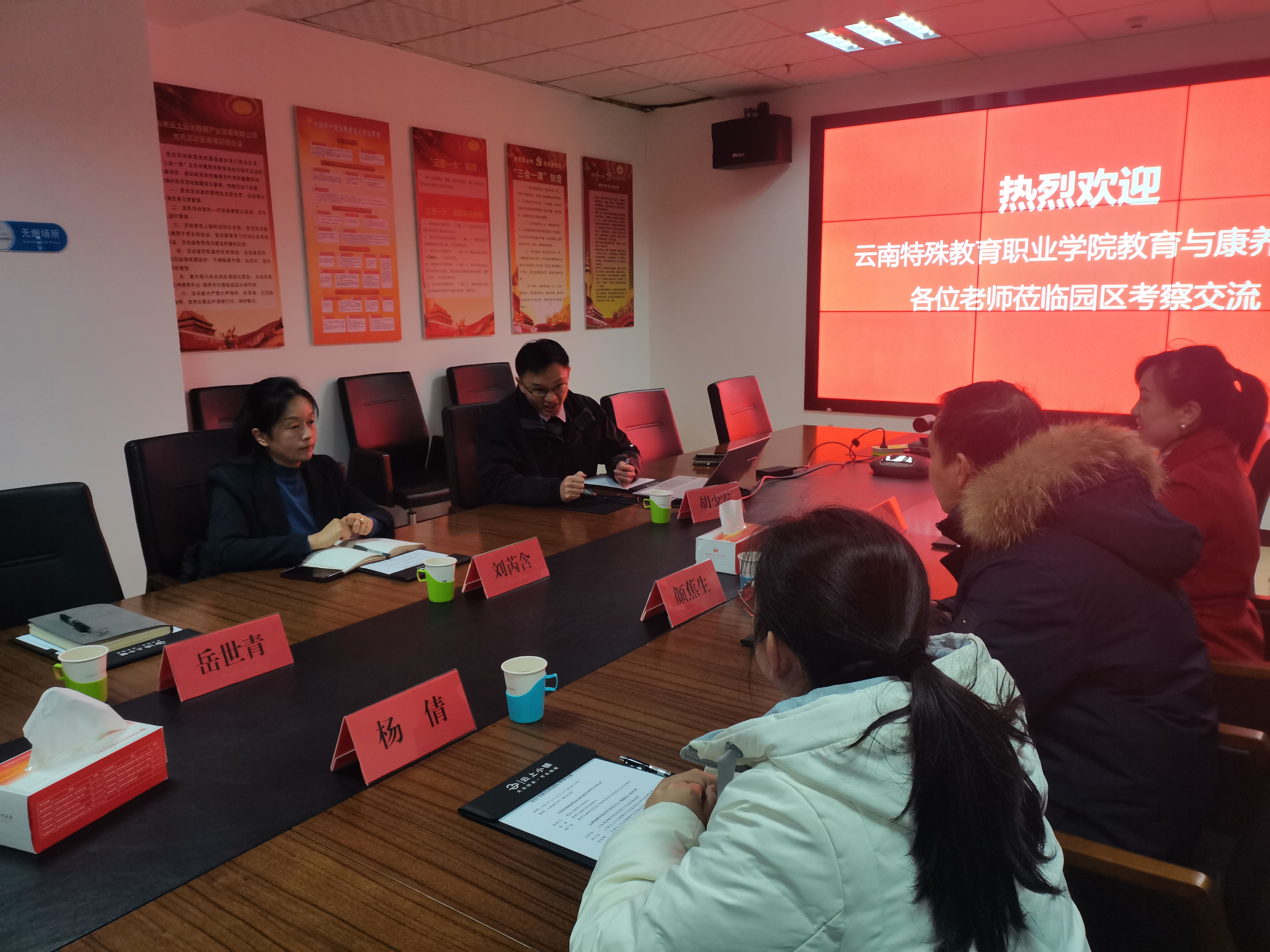在园区相关负责人的热情接待下,访企团队首先与企业代表在会议室举行座谈。企业负责人详细介绍了企业发展历程、业务领域、技术优势及未来规划,并重点提出了当前产业转型升级背景下对高素质技术技能人才的需求。颜院长介绍了学院专业设置情况、人才培养特色及学生实习就业情况,双方就共建实习实训就业基地等合作达成初步共识。