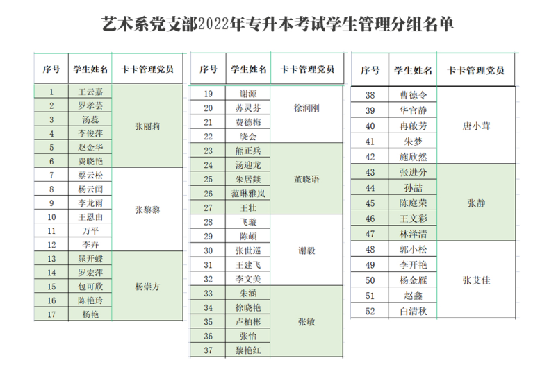 会前,艺术系党支部党员教师张敏做好返滇学生统计,艺术系共51名学生参加专升本考试,其中2人在省外,为跟踪学生健康情况,艺术系党支部全体党员按照分工,每天两次督促学生打卡,关注学生的健康码、行程码是否异常,要求学生做好体温监测,告知学生如果出现相关症状,立即上报。