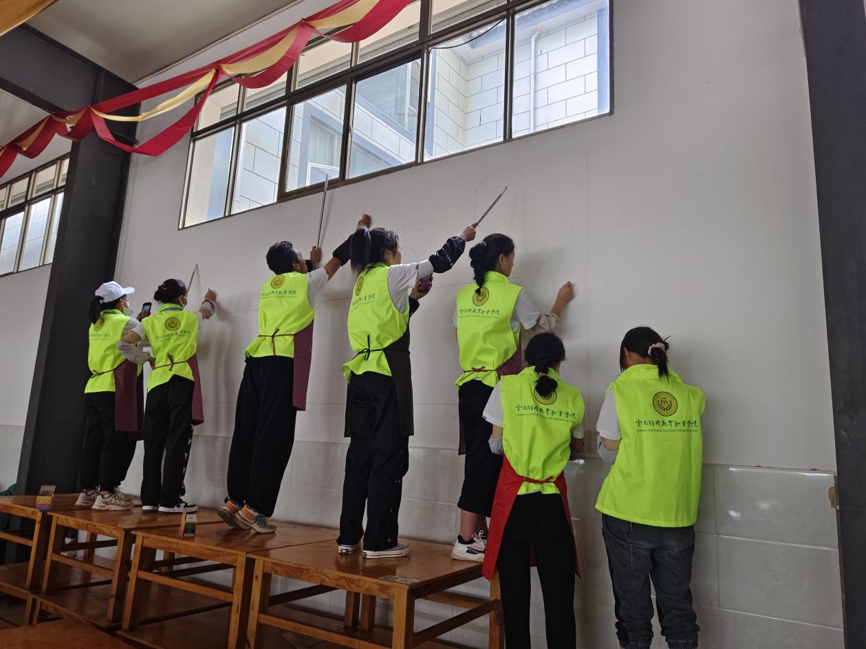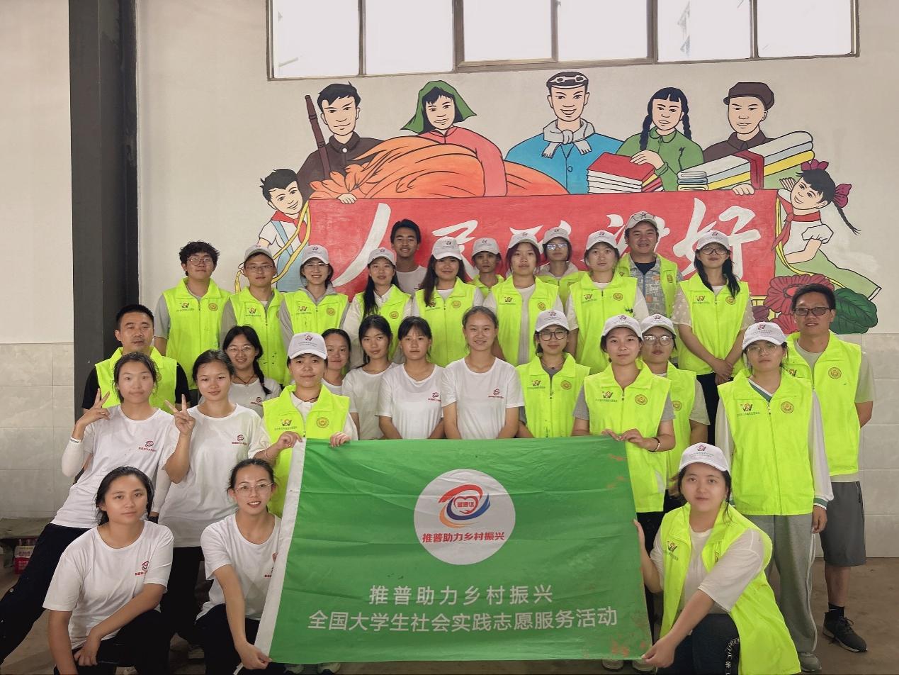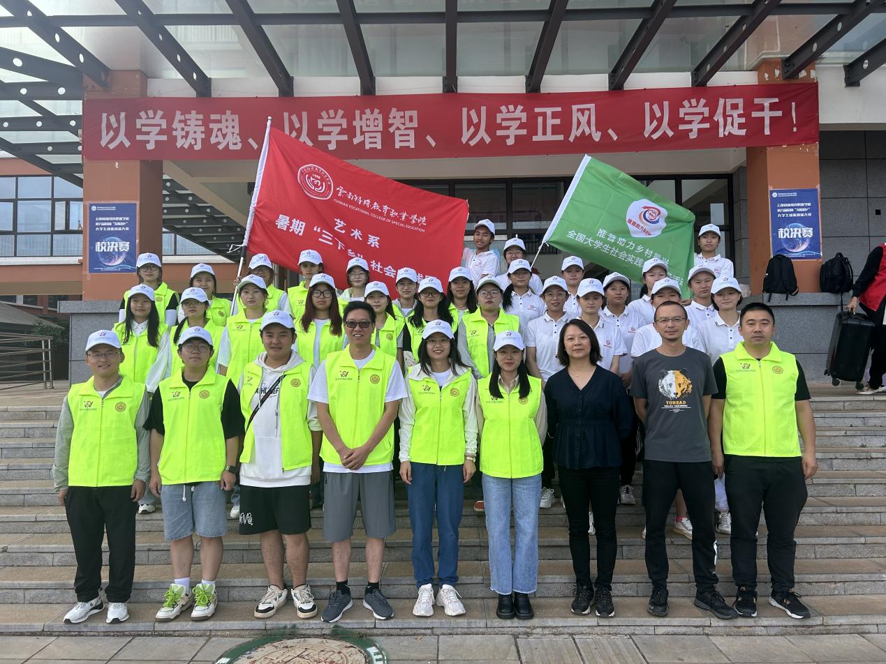 为加大国家通用语言文字推广力度,服务铸牢中华民族共同体意识,助力乡村振兴战略实施,切实发挥共青团作用,引导和帮助广大青年学生在与现实相结合的“大思政课”中受教育、长才干、作贡献。beat365英国官方网站艺术系组织29名学生(其中听障学生13名),组建成立无声墙绘志愿服务实践团,于2023年7月7日至9日前往玉溪市江川区三街社区开展“推普助力乡村振兴”暑期社会实践志愿服务活动。此次活动由艺术系团总支书记杨崇方带领,指导教师有徐润刚、蒙晗婷、吕南及马克思主义学院柳琴,活动得到了江川区团委和新时代文明实践中心的大力帮助和支持。